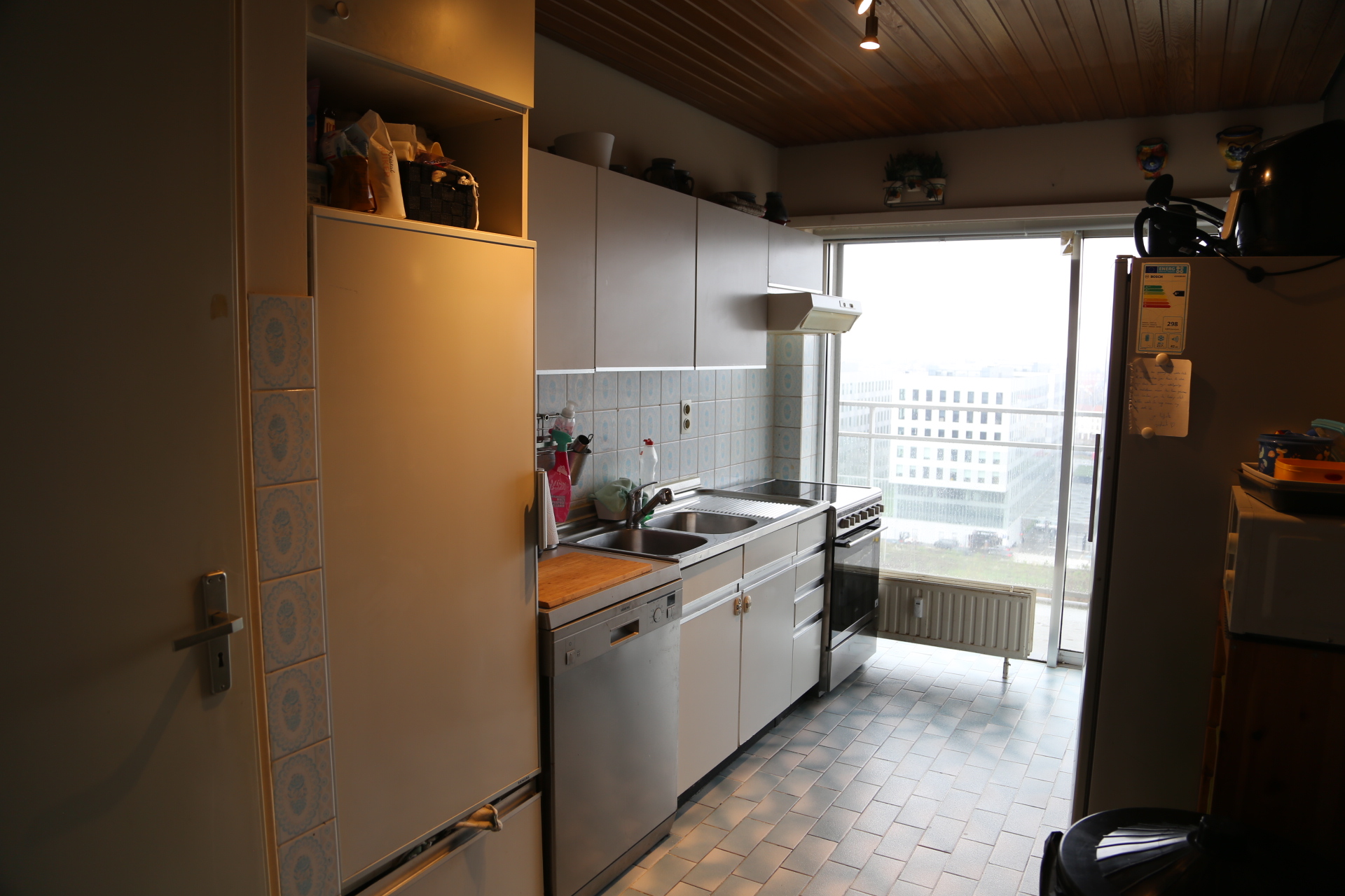 In dit prima onderhouden gebouw (met concierge) vind je dit appartement op de 12de verdieping. Een fantastisch uitzicht is hier gegarandeerd!