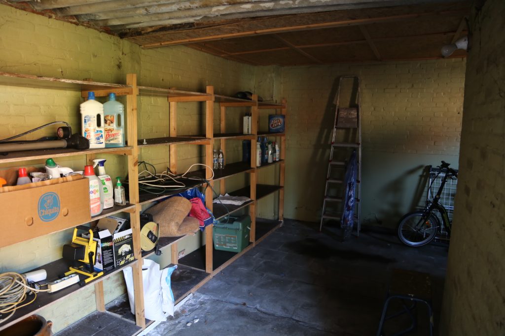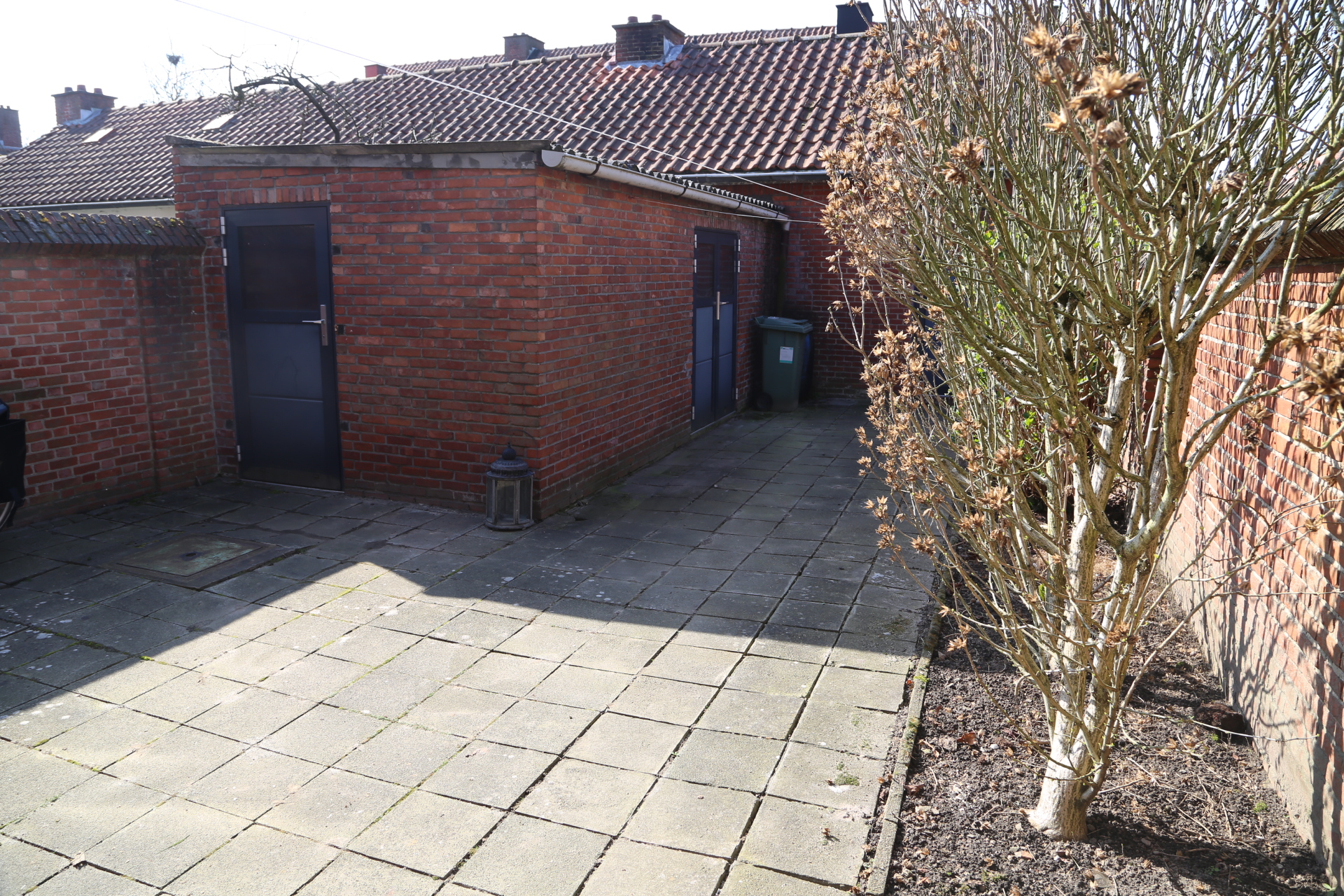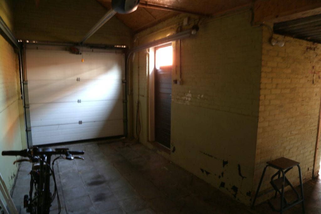 • De tuin met achterin een berging en, als kers op de taart: een garage met elektrische poort