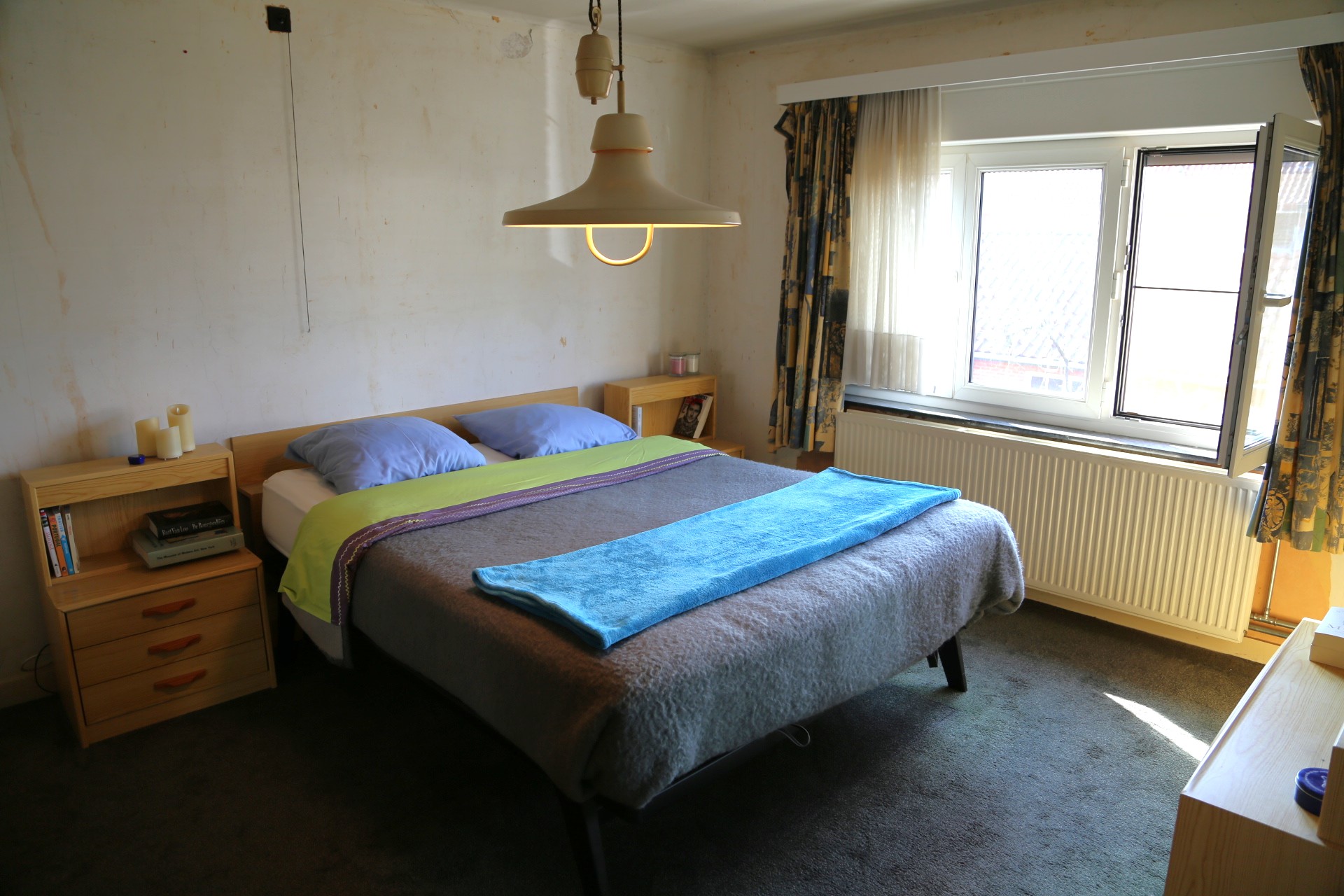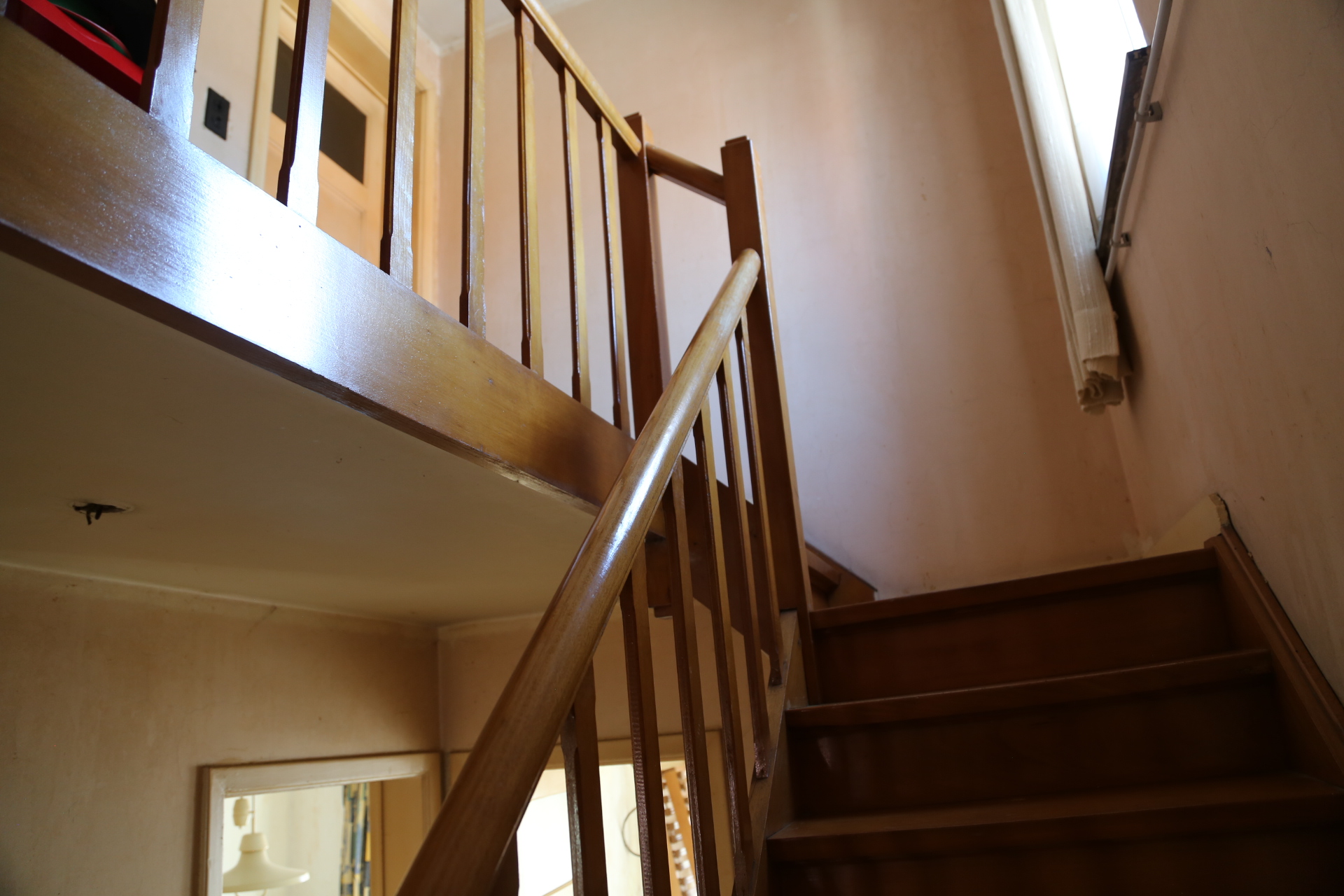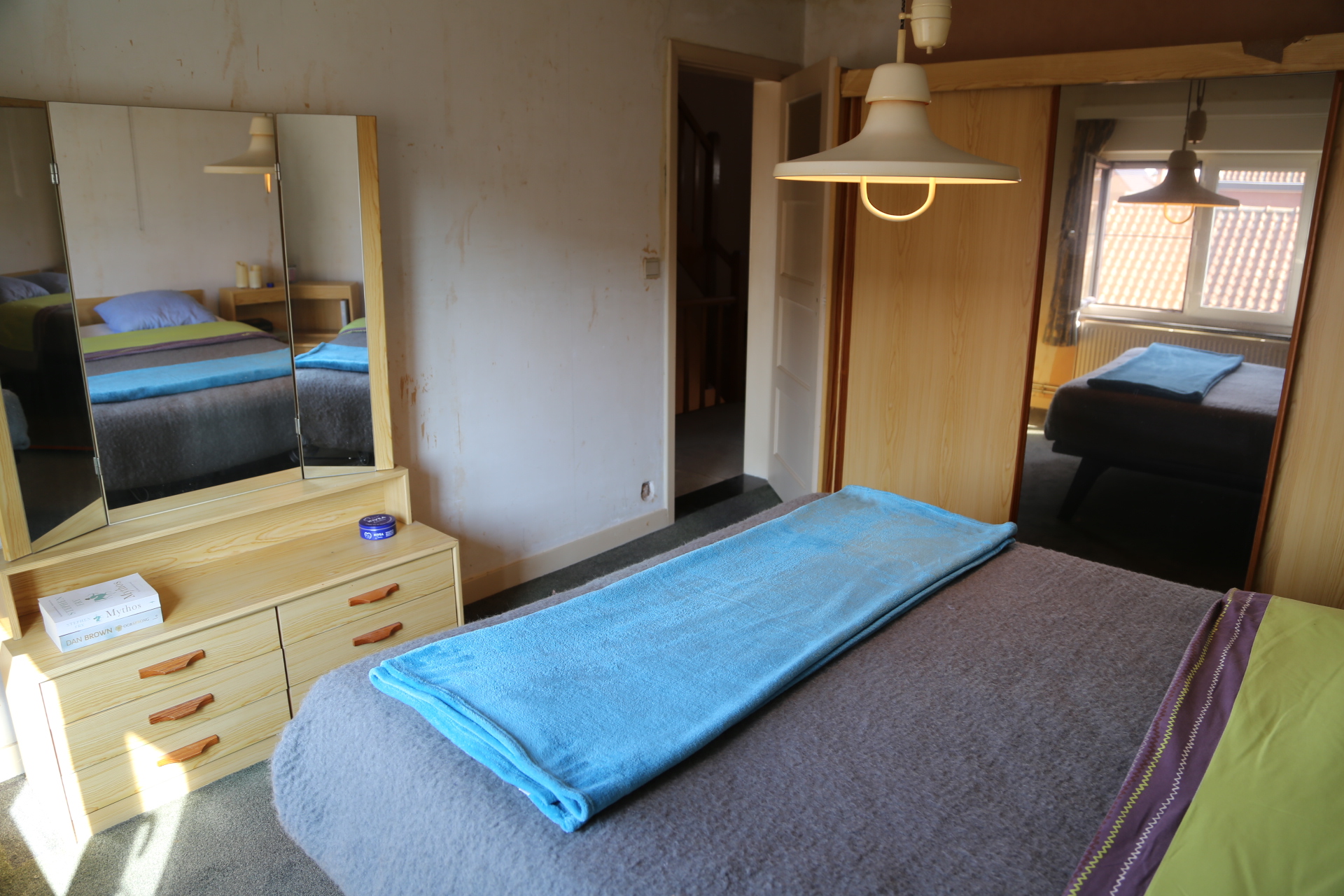 Op de eerste verdieping zijn er 3 slaapkamers en een badkamer die aan vervanging toe is